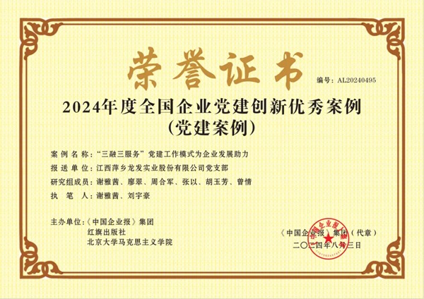 8月3日,2024全國企業(yè)黨建(案例)研討會暨第四屆企業(yè)黨建創(chuàng)新優(yōu)秀案例發(fā)布儀式在京成功舉辦,江西萍鄉(xiāng)龍發(fā)實業(yè)股份有限公司黨支部申報的課題《“三融三服務(wù)”黨建工作模式為企業(yè)發(fā)展助力》成功入選“2024年度全國企業(yè)黨建創(chuàng)新優(yōu)秀案例”(黨建課題成果案例)。近年來,龍發(fā)實業(yè)黨支部在湘東...