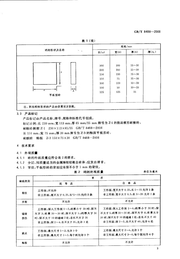 該產(chǎn)品經(jīng)過北京有色冶金設(shè)計(jì)總院、甘肅化工設(shè)計(jì)院、景德鎮(zhèn)陶瓷學(xué)院及華南理工大學(xué)等嚴(yán)格審核,各項(xiàng)技術(shù)指標(biāo)均符合同類產(chǎn)品水平。耐酸耐溫磚、板、管規(guī)格尺寸可按用戶或設(shè)計(jì)部門的圖紙要求制造。