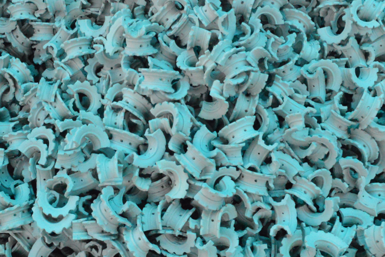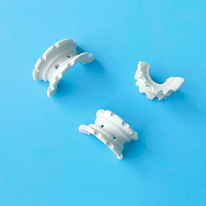 陶瓷異鞍環(huán)填料是在矩鞍環(huán)填料基礎上加以改進的新型填料,外觀上異鞍環(huán)將矩鞍填料的平滑弧形側(cè)面改為鋸齒形或波紋凸起的側(cè)面。這樣在填料床層內(nèi),增加了填料間接觸的空隙,使之更有利于氣體和液體在填料層中的流動和分散,具有壓降低,傳質(zhì)效率高等特點。陶瓷異鞍環(huán)具有優(yōu)異的耐酸耐熱性能,能耐除氫氟酸以外的各種無機酸、有機酸及有機溶劑腐蝕,可在各種高溫場合使用,應用范圍十分廣泛,可用于化工、冶金、煤氣、環(huán)保等行業(yè)的干燥塔、吸收塔、冷卻塔、洗滌塔、再生塔等。